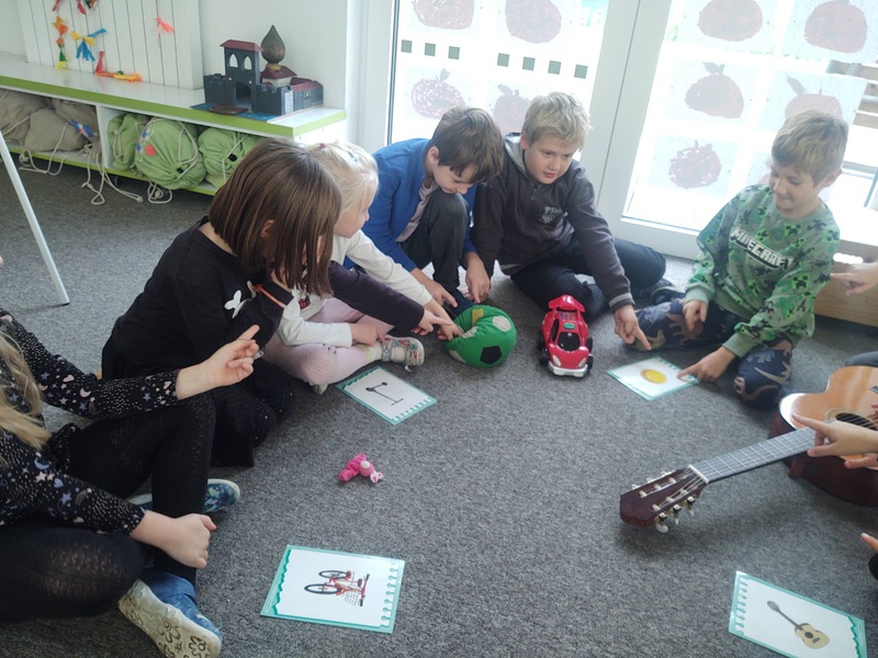 Když jsme důkladně procvičili barvy, začali jsme se učit o škole a pojmenovat školní pomůcky a nábytek. Viděli jsme první video s pejskem Lucky. Dramatizovali jsme komiks a zpívali anglické písničky.