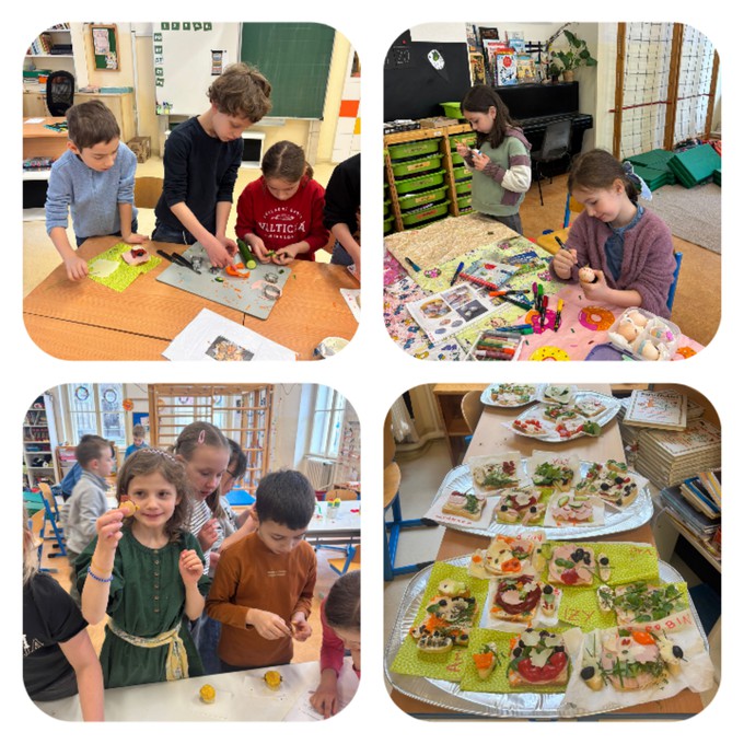 Začali jsme dnem plným legrace - Aprílem a zároveň projektovým dnem k Velikonocům. Ochutnali jsme beránka a jidášky, vyzkoušeli řehtačku a pomlázku, naučili se neznámé říkanky a četli si o různých lidových zvycích. Na zahradě nás čekala velikonoční bojovka.