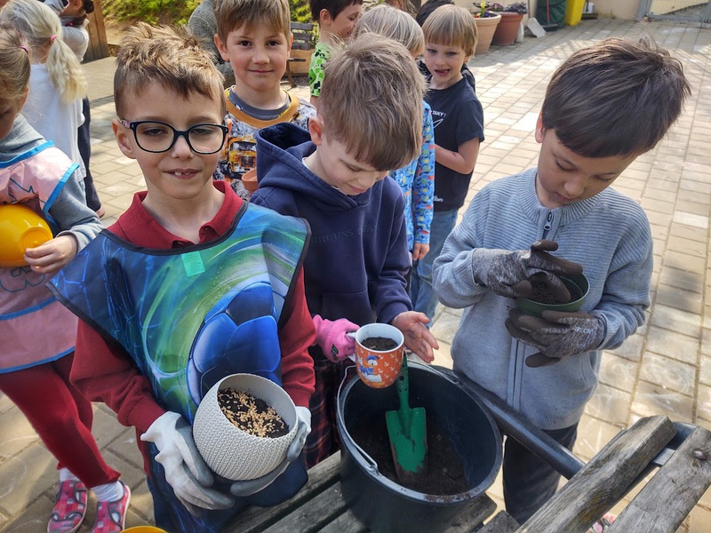 Vysvětlili jsme si, jaký je rozdíl mezi setím a sázením a zaseli osení a řeřichu. Pozorujeme klíčení semínek.