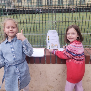 Měli jsme projektový den o ptácích na krmítku a společně také dáváme do krmítka na školní zahradě slunečnicová semínka a lojové koule a ptáčky pozorujeme z okna.