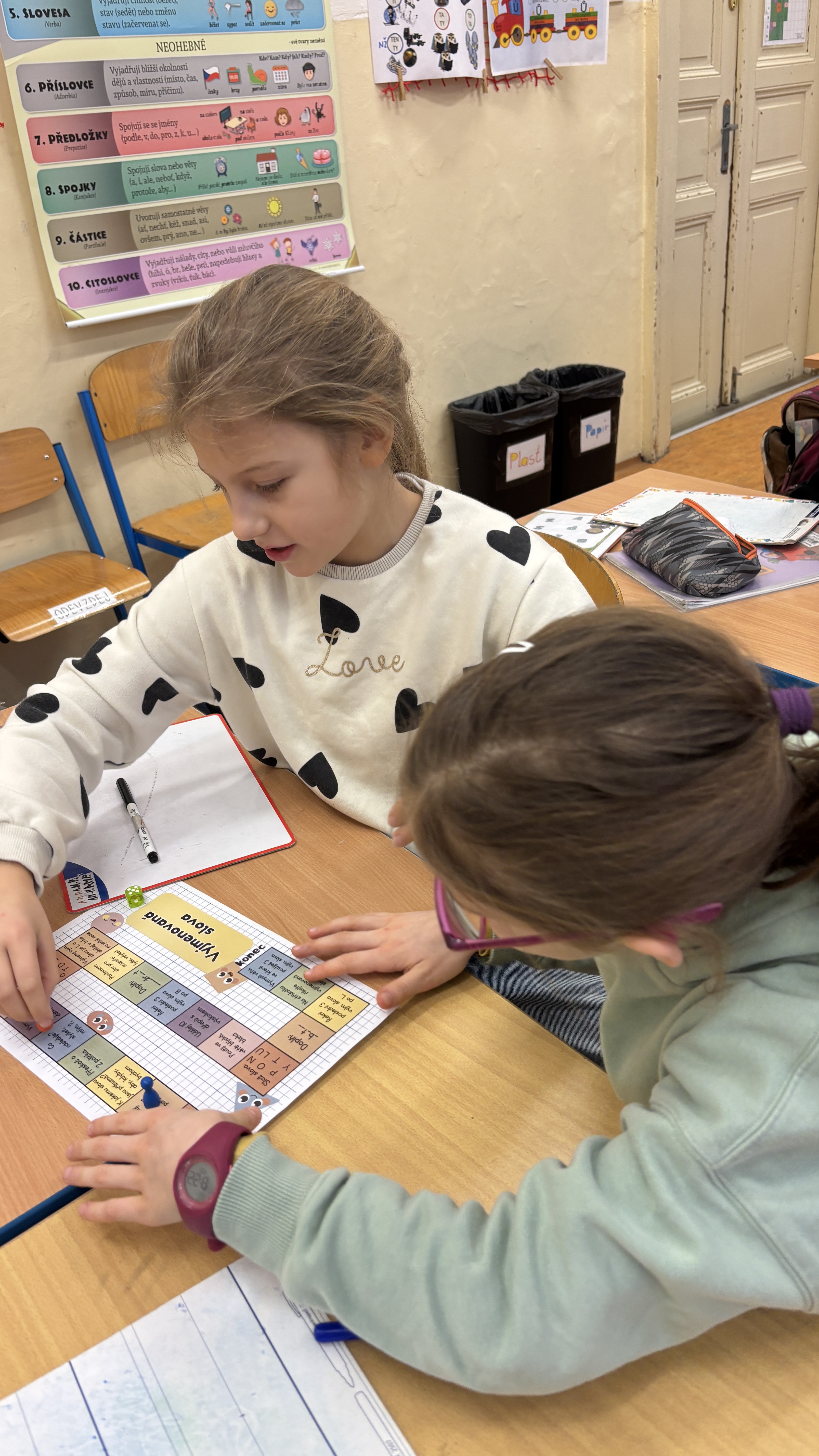 V českém jazyce jsme už pouze opakovali - psaní i/y po tvrdých a měkkých souhláskách, spodobu znělosti na konci slov, vlastní jména, hledání sloves a podstatných jmen, čtení, psaní slov, vět i krátkých souvětí atd. Bylo toho spoustu skrze různé aktivity.